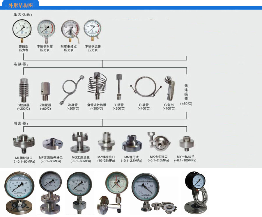 隔膜壓力表選型表:
