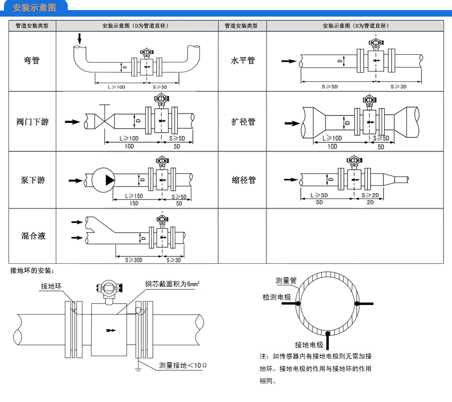 ◆可水平、垂直、傾斜方式安裝,只要保證測量管內充滿液體和沒氣泡即可。