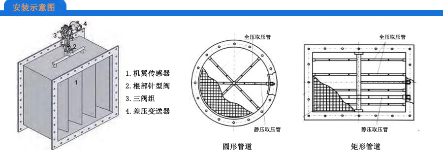 產(chǎn)品圖分別是單機翼和雙機翼形(也可是多機翼)機翼形測風裝置。從圖中可以看到它