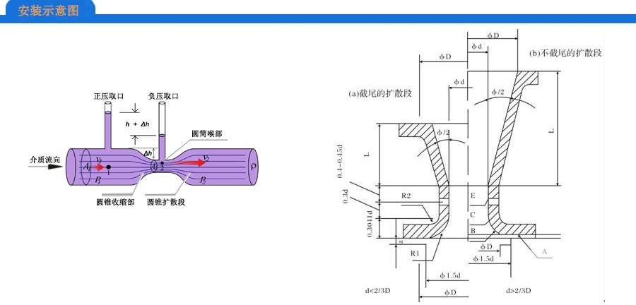 | 機械加工收縮段 | 50mm≤DN≤250mm | 0.4≤β≤0.75 | 2×105≤Re ≤2×106 | 碳鋼或不銹鋼 |
