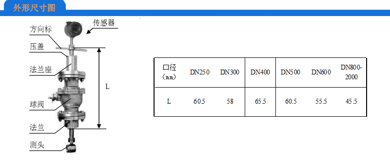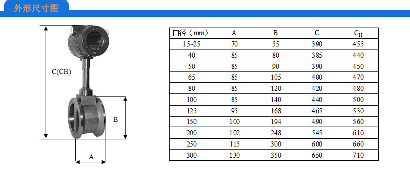 | 注:DN250~DN600可按客戶要求訂貨;DN300以上口徑推薦使用插入式渦街流量計。 | ||