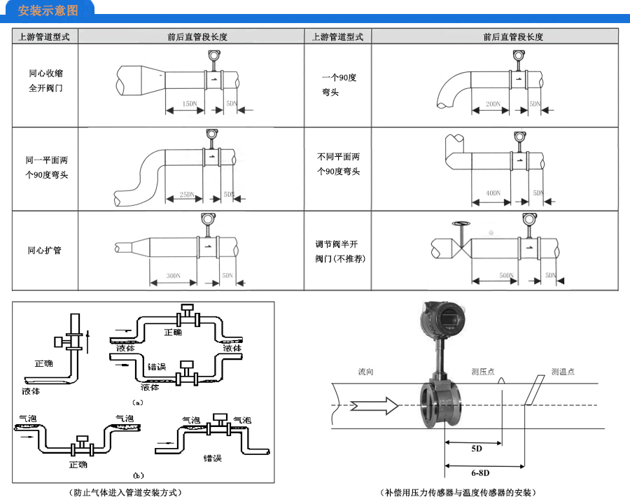 10、壓力損失:△=1.2×r×V2×10-6 式中:△P-壓力損失 r-被測的流體密度(Kg/m3) v-管內平均流速(m/s)