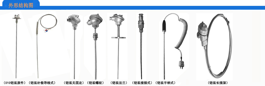 鎧裝熱電偶是采用兩根不同材質(zhì)的偶絲作為測(cè)量原件,根據(jù)溫度范圍不同兩根偶絲的材質(zhì)不同,也就是對(duì)應(yīng)不同的分度號(hào)。熱電偶根據(jù)應(yīng)用場(chǎng)合的不同有不同外形的不同種類,但是大體都是由偶絲、保護(hù)套管、安裝固定裝置和接線盒組成。