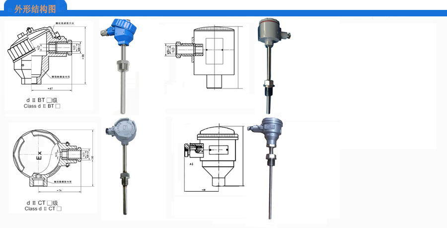 WZ系列防爆熱電阻采用鑄鋁防爆接線盒,是一種工業現場常用的溫度測量傳感器,根據電阻的熱效應,利用物質在溫度變化時,其電阻值也隨著發生變化的特征來測溫的,當阻值變化時,工作儀表便顯示出阻值所對應的溫度值。根據國家規定裝配熱電阻應符合IEC國際標準分度號的Pt100鉑熱電阻和符合標準分度號的Cu50銅熱電阻兩大類裝配式、統一設計型熱電阻,目前常用分度號為Pt100,以及部分使用Pt1000。通常與顯示儀表、記錄儀和數字調節儀等配套使用,用于溫度的測量顯示與控制等用途。
