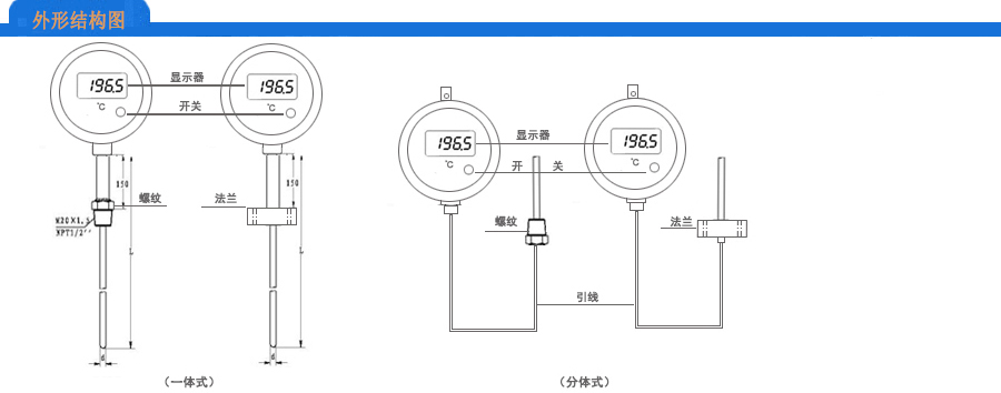 數字式溫度計(不銹鋼表頭) 數字式溫度計(酚醛壓塑表頭) 數字式溫度計(鑄鋁表頭) |