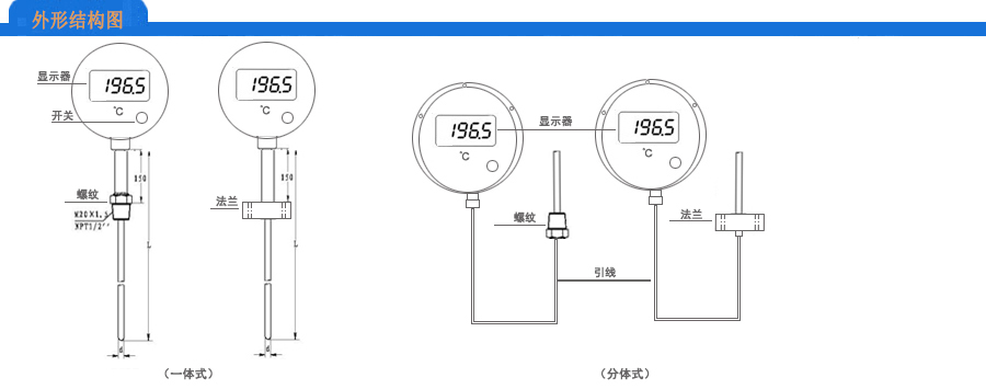 數字式溫度計(不銹鋼表頭) 數字式溫度計(酚醛壓塑表頭) 數字式溫度計(鑄鋁表頭) |