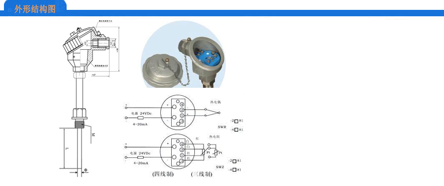 單支(一個4~20mA) 雙支(二個4~20mA) 雙支(一個4~20mA、一個Pt100) |