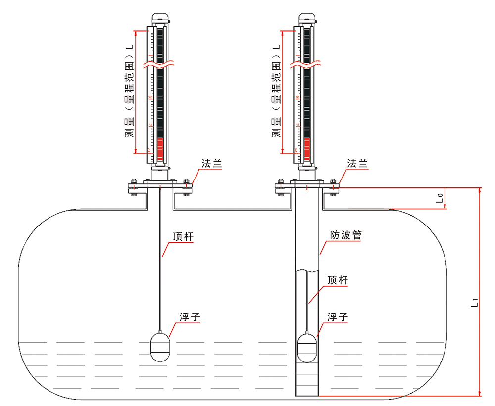 YK-UHZ系列頂裝式磁翻板液位計是一種容器頂部插入式液位計。根據液體浮力原理,下部大浮子隨著液位上下升降帶動上部內有磁鋼的小浮子同時升降,同時驅動測量翻版箱內的紅白翻珠的翻轉來顯示液位的高度。適用于各種臥式罐、槽等容器的液位進行測量,適用介質也非常廣泛:水、油、酸、堿及各類液體化工原料等。因此在電力、石油、化工、冶金、環保、船舶、建筑、食品等行業的液位測量與控制過程中應用廣泛。