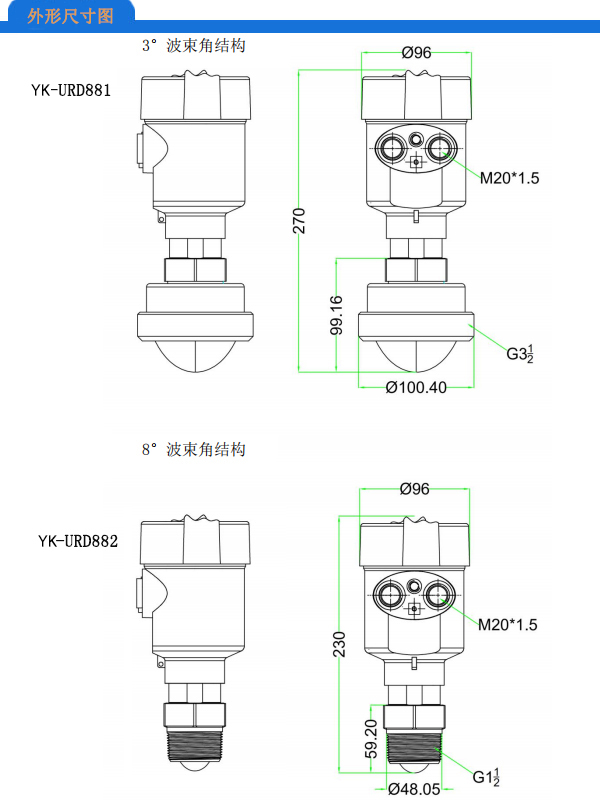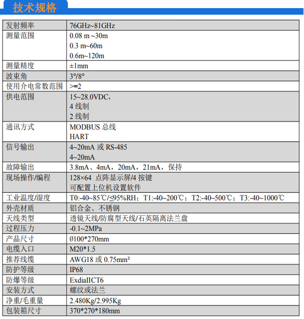 YK-URD880系列調頻連續波雷達物位計采用了76-81GHz的調頻連續波,產品zui大量程可以達到120m盲區可以做到8cm。zui窄3°天線波束角,安裝環境中的干擾對儀表的影響更小,安裝更為便捷。波長更短,在固體表面具有更好的反射特性,因而不需要特別的使用萬向法蘭來進行瞄準。