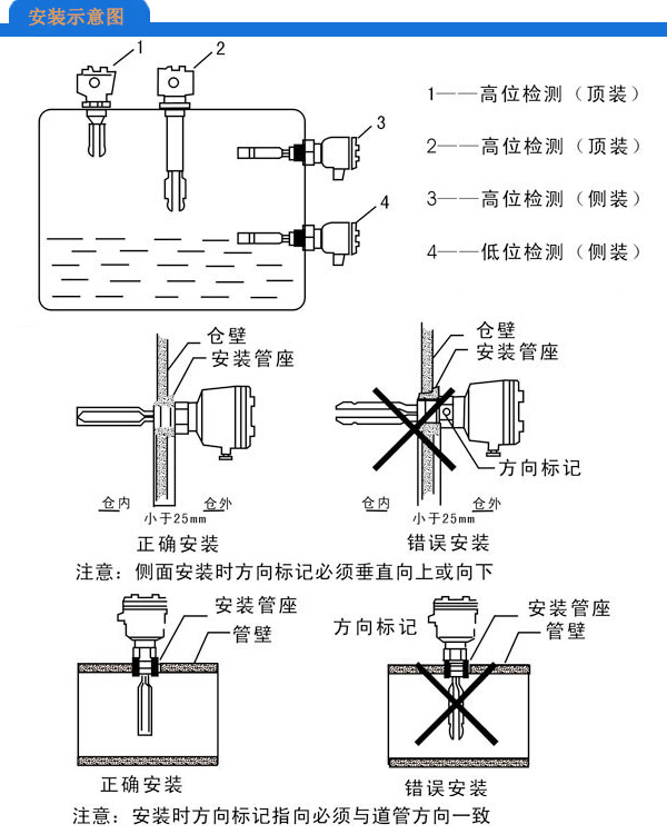 8、 被測介質密度:固體≥0.1g/cm3;液體≥0.7g/cm3