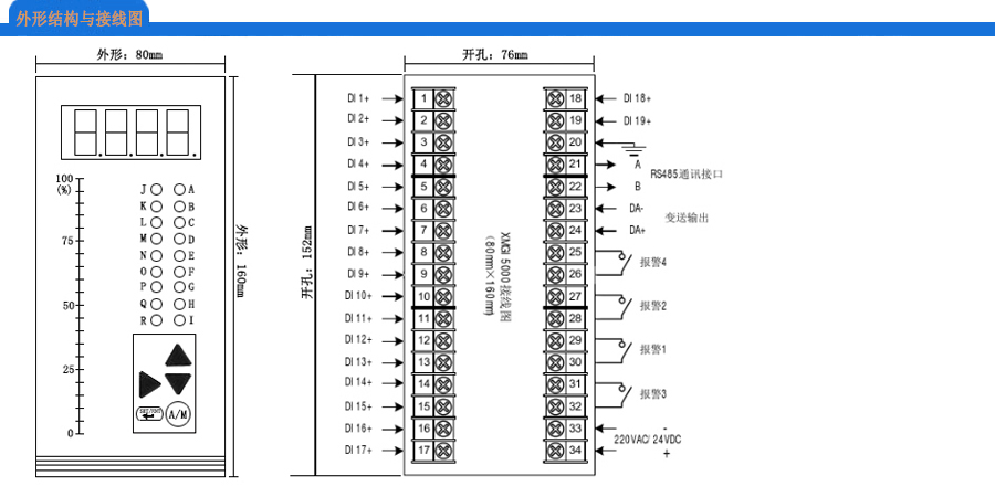 報警功能:上限、下限、上下限、上回差、下回差、雙回差、OK方式、正值方式等。