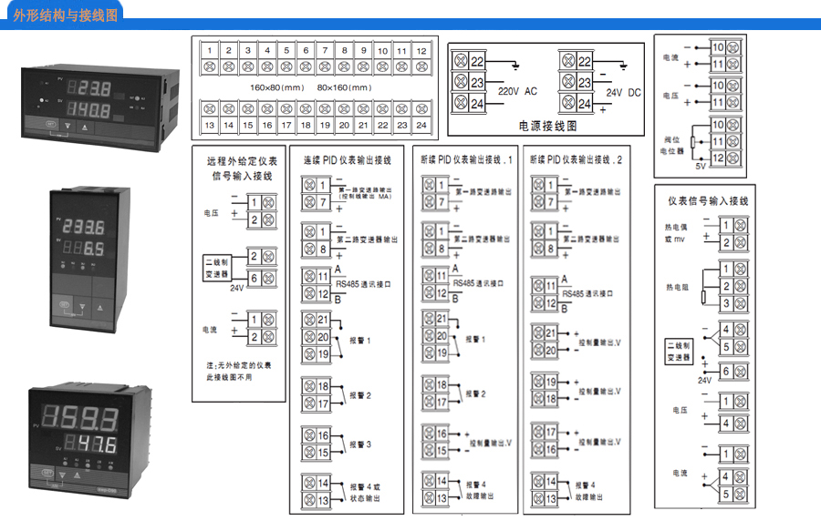 13、斷續PID的調節器儀表可以為用戶內置40A雙向可控硅直接控制交流2KM以下的單項阻性負載或輸出3組觸發500A以下雙向可控硅的同步信號。