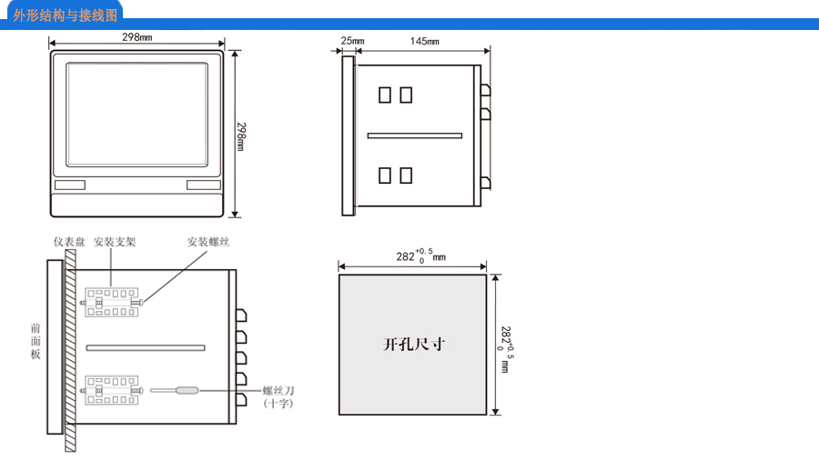 外形規(guī)格:298*298mm(開孔:282*282mm)